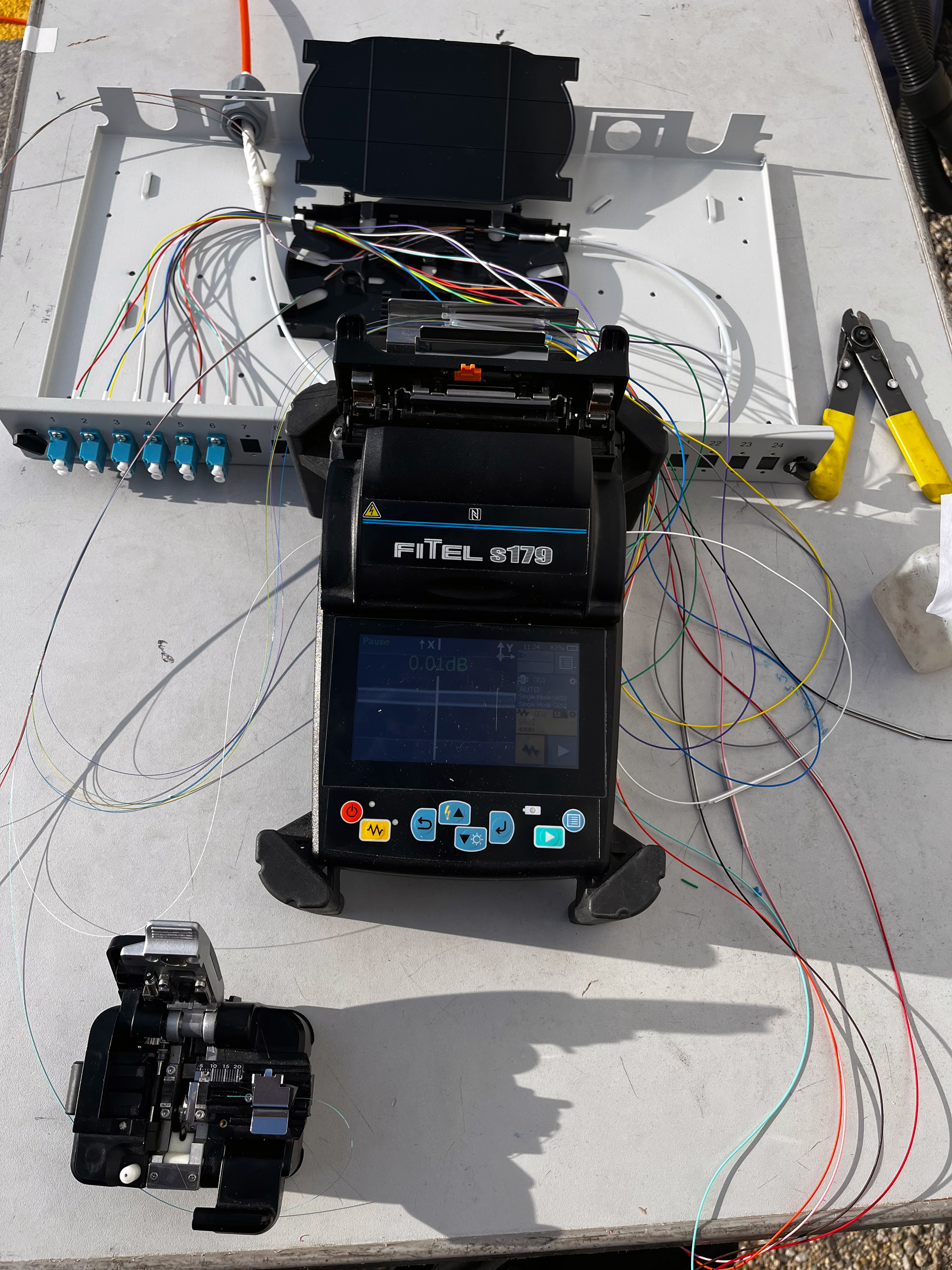 Pri svojem delu uporabljamo varilnike fuzijskih zvarov proizvajalca Fujikura, Fitel, meritve na optičnih linijah pa izvajamo z opremo Exfo. Zaposleni v podjetju smo usposobljeni in strokovno podkovani za delo z optičnimi vlakni.